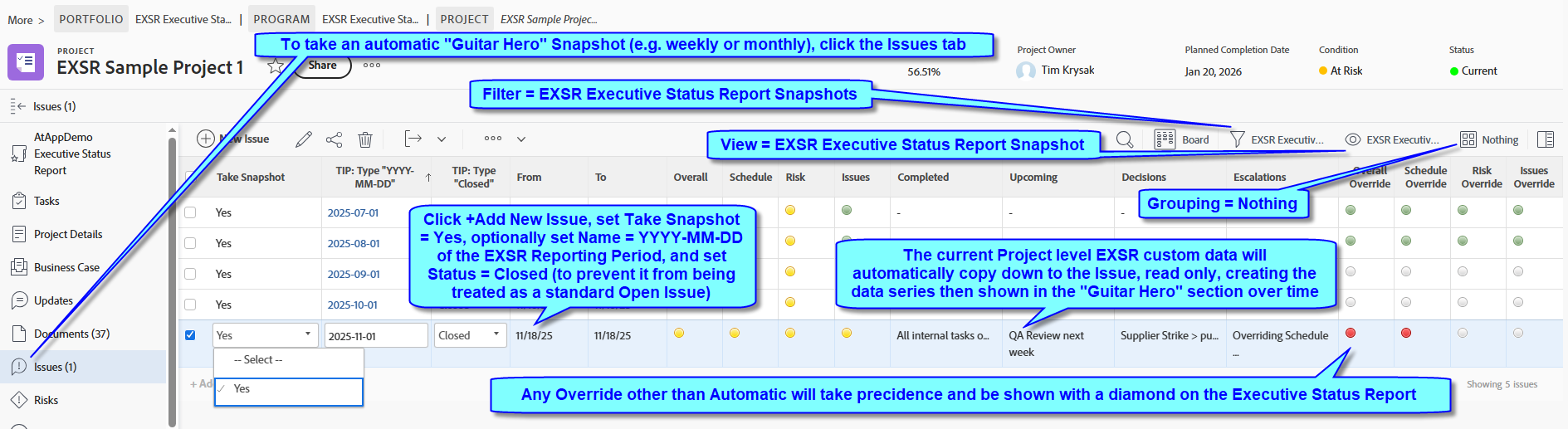 As the screen shots below illustrate, our Executive Status Report solution involves five main components:
